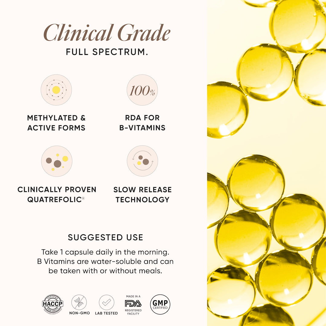 Bioactive B Complex | Methylated B Vitamins with Biotin & Vitamin C | 60 Capsules