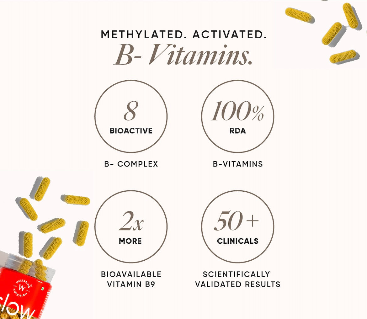 India’s first Methylated Bioactive B-Complex+ delivering all 8 essential B-vitamins in their methylated, bloodstream-ready forms for superior absorption and faster utilization. This scientifically validated formula combines Inositol, Choline Bitartrate, and Betaine (TMG) to support healthy methylation, cellular energy and overall vitality. Designed to amplify Vitamin B activity, it supports metabolism, mood, nerve health, detox pathways and daily performance. Powered by clinical grade Quatrefolic® 5-MTHF (100× more soluble than standard folic acid) & Methylcobalamin (3× better retained), it delivers higher bioavailability, faster results and more efficient absorption than regular B-complex supplements. Ideal for those with low B-vitamin absorption, methylation issues, fatigue, stress, or high-performance lifestyles.