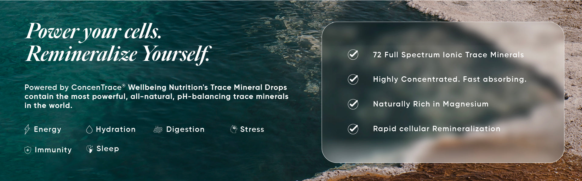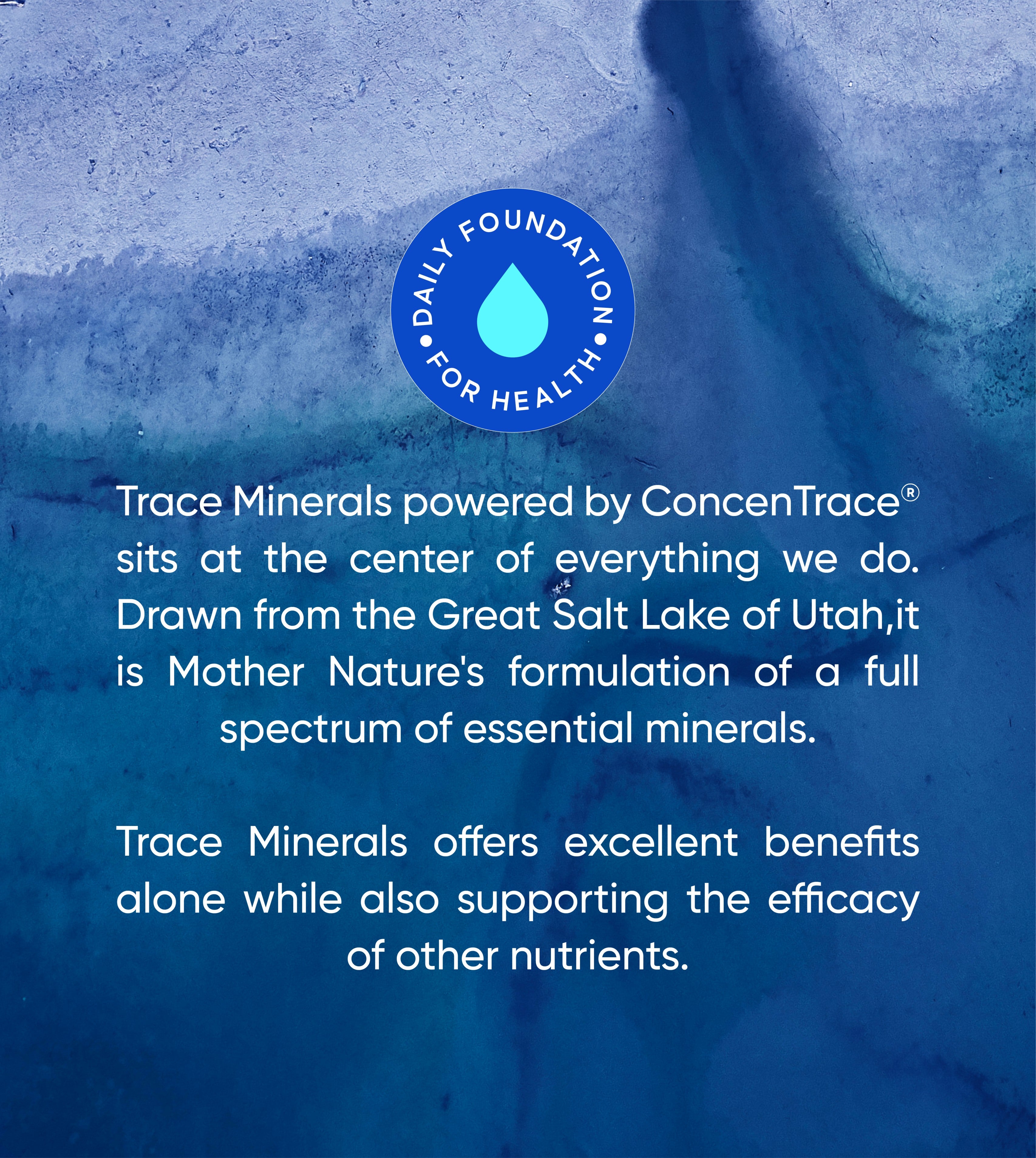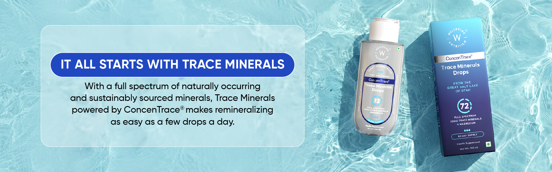India’s first Trace Mineral Drops powered by ConcenTrace®, a clinically proven complex of 72 full-spectrum ionic trace elements sustainably harvested from the pristine Great Salt Lake of Utah using ConcenFlo®, a proprietary technology that ensures exceptional purity and potency. This highly concentrated liquid mineral complex helps restore the body’s natural mineral balance, supporting over 300 metabolic processes and cellular hydration for optimal health and vitality. Enriched with bioavailable magnesium, it replenishes essential minerals missing from soil and diet, helping maintain energy, immunity, and pH balance naturally one drop at a time.