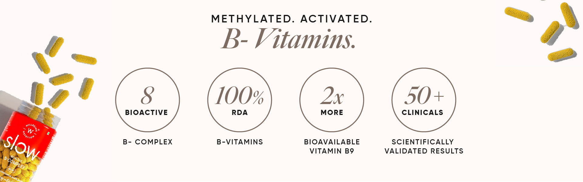 India’s first Methylated Bioactive B-Complex+ delivering all 8 essential B-vitamins in their methylated, bloodstream-ready forms for superior absorption and faster utilization. This scientifically validated formula combines Inositol, Choline Bitartrate, and Betaine (TMG) to support healthy methylation, cellular energy and overall vitality. Designed to amplify Vitamin B activity, it supports metabolism, mood, nerve health, detox pathways and daily performance. Powered by clinical grade Quatrefolic® 5-MTHF (100× more soluble than standard folic acid) & Methylcobalamin (3× better retained), it delivers higher bioavailability, faster results and more efficient absorption than regular B-complex supplements. Ideal for those with low B-vitamin absorption, methylation issues, fatigue, stress, or high-performance lifestyles.