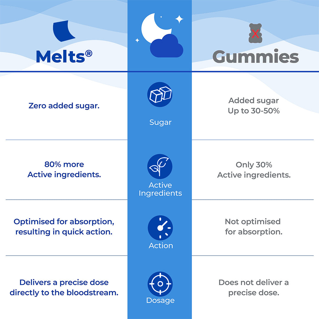Wellbeing Nutrition's melts® range offers an innovative approach to supplementation with oral thin strips that bypass the digestive system for faster absorption and superior bioavailability. Using cutting-edge nano-science technology, these plant-based melts deliver nutrients more effectively and efficiently. Compact, portable, and water-free, they are ideal for busy lifestyles. Whether for sleep, stress relief, or overall wellness, melts® provide a convenient, natural, and potent alternative to traditional supplements. Their sublingual delivery ensures optimal nutrient absorption, backed by patented formulas and scientific results. The melts® range is the future of wellness technology.